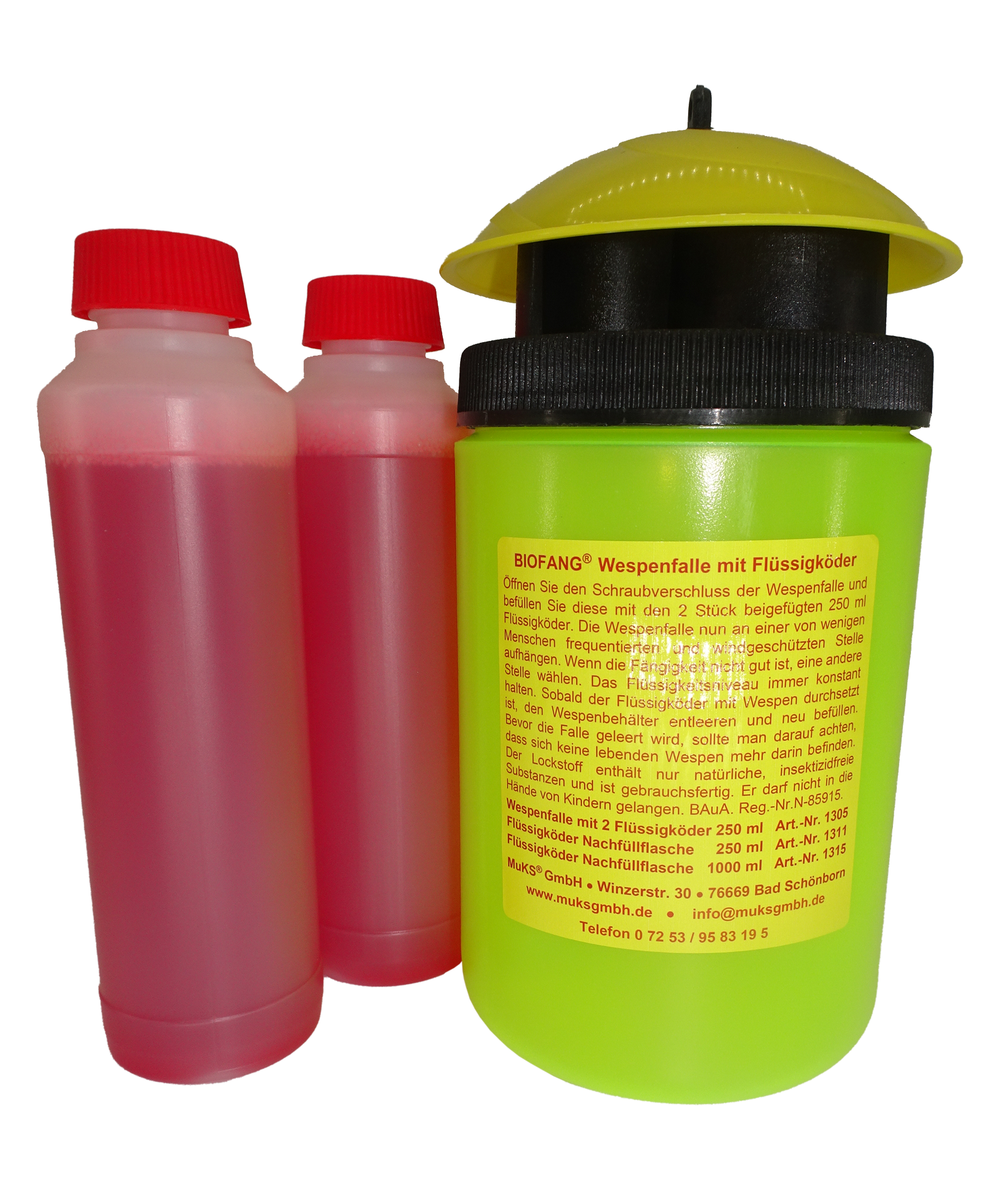 Packungsinhalt: 1 Wespenfalle und 2 Flaschen Flüssigköder mit je 250 ml.