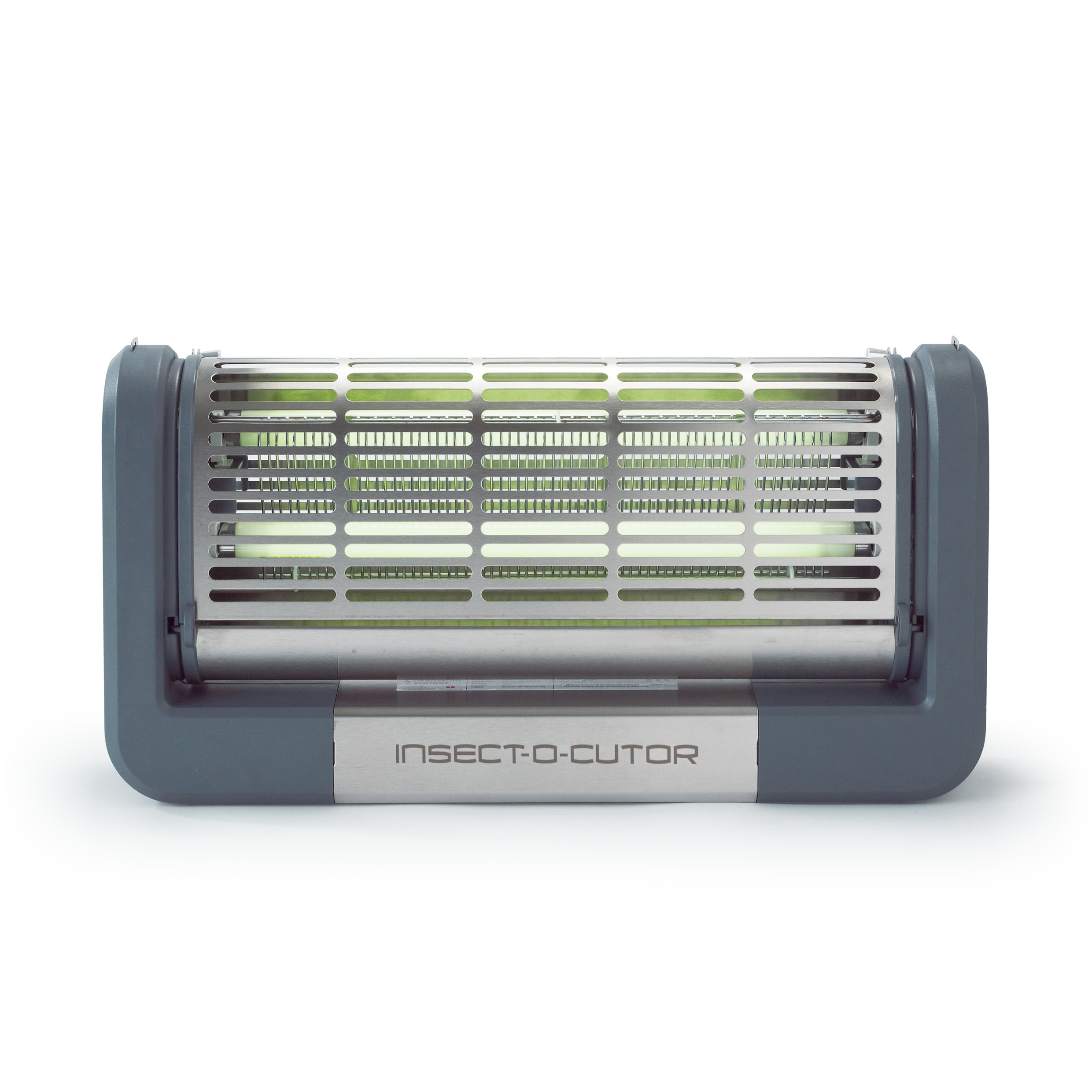 Besonderheiten: Neuartiger elektronischer Fluginsektenvernichter und hocheffiziente Grünlicht-Röhren mit einer dualen Wellenlänge für höhere Fangquoten. Innovatives offenes Design führt zu hohem Lichtaustritt und dadurch zu größerer Fängigkeit. Das patentierte Z-förmige Stromgitter bietet einen 20% größeren Fangbereich. Die tiefe, verriegelte Auffangwanne ist so konstruiert, dass ein Herausblasen der getöteten Fliegen durch Wind verhindert wird. Die aufklappbare Fronttür erlaubt einen einfachen Röhrenwechsel und Reinigung.