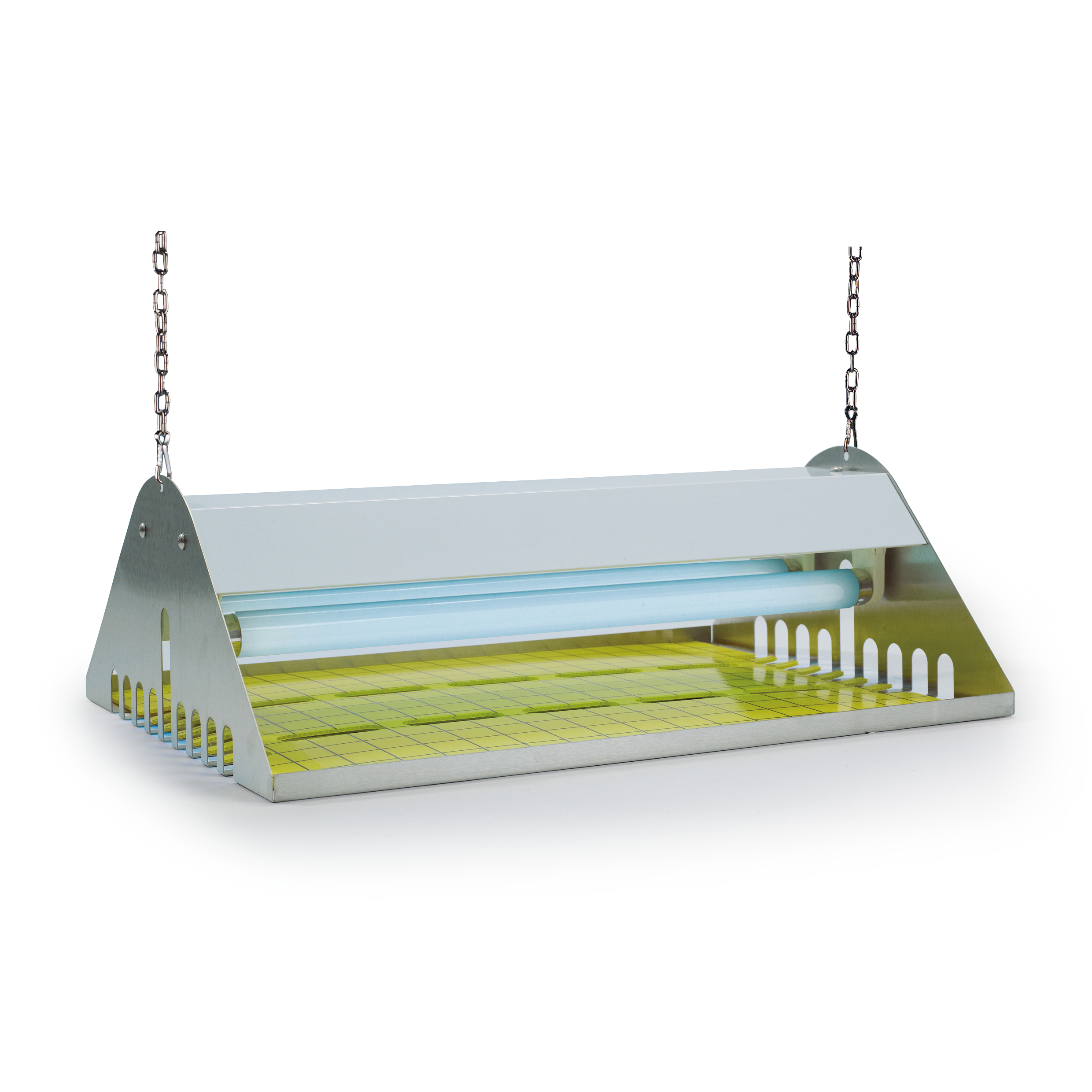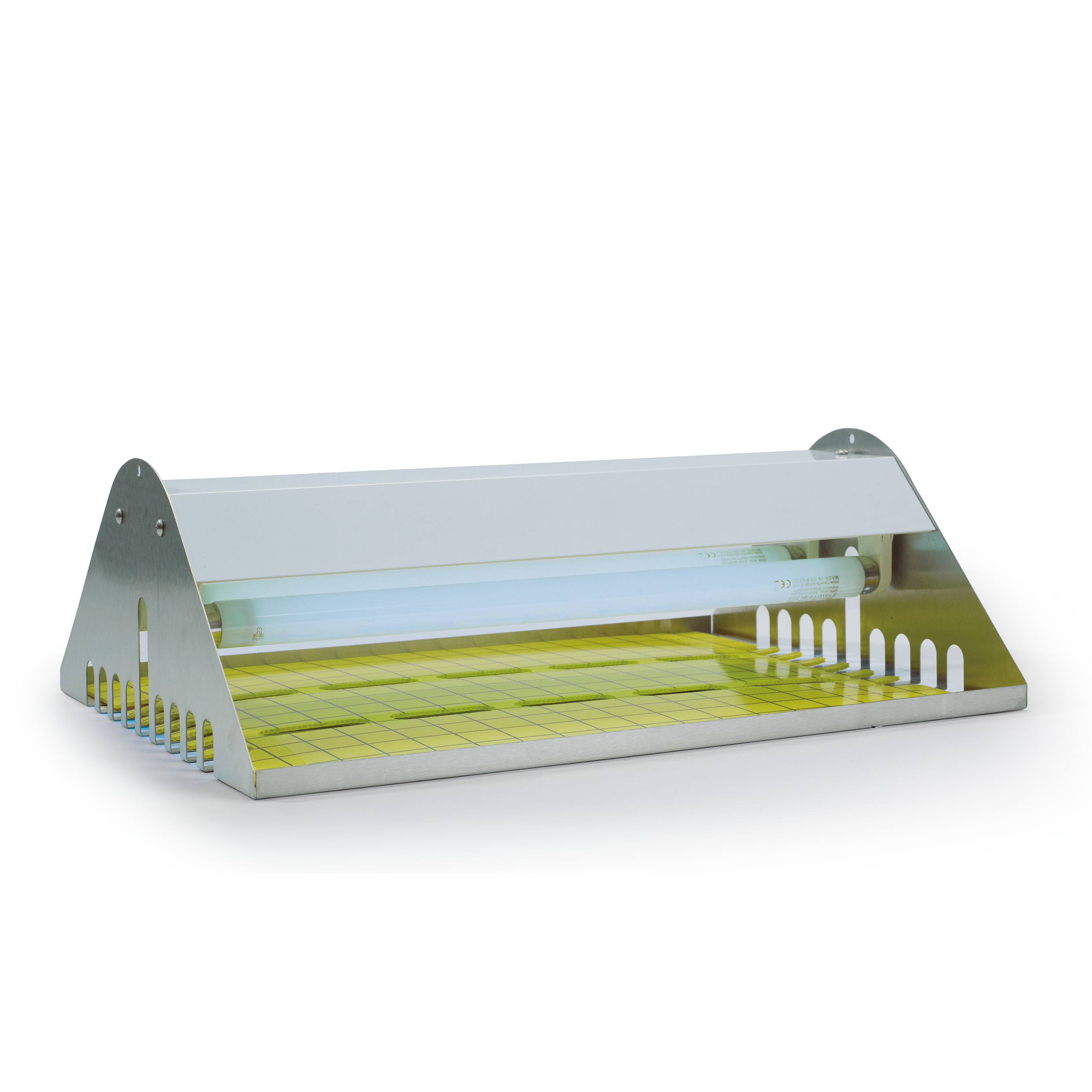 Besonderheiten: Reflektierendes Licht durch Edelstahl-Konstruktion (Abdeckung Stahlblech weiß lackiert) und von allen Seiten offen, so dass die UV-Lampen ihre Lockwirkung optimal entfalten können.