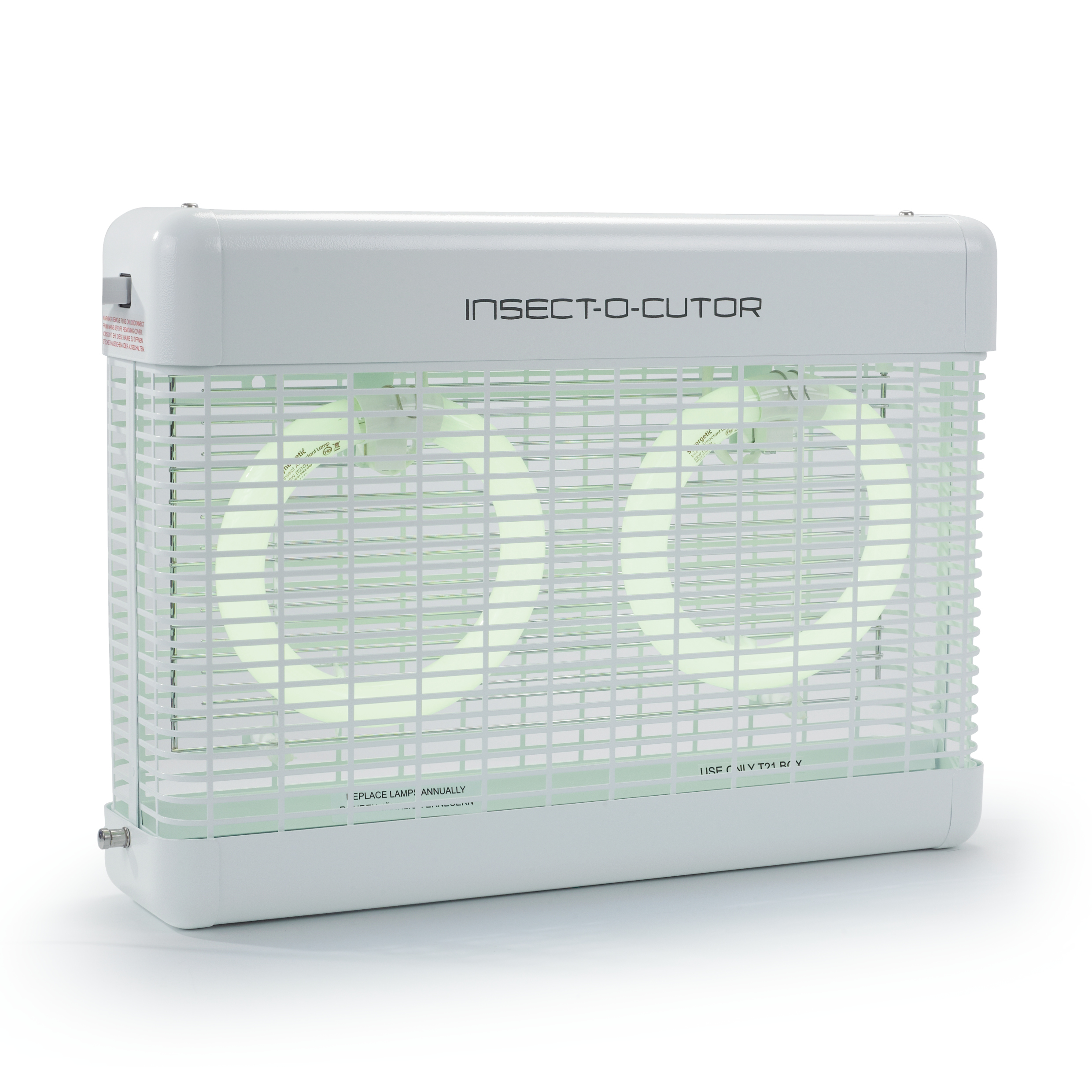 Besonderheiten: Fluginsektenvernichter mit großer Leistungsfähigkeit und höheren Fangquoten durch 2 x 22 Watt Grünlicht-Rundröhren für eine gesteigerte Anziehung von Fluginsekten. Automatische Stromabschaltung des Gerätes beim Entfernen der Auffangschale. Ideal für den Einsatz in Lebensmittellagern.